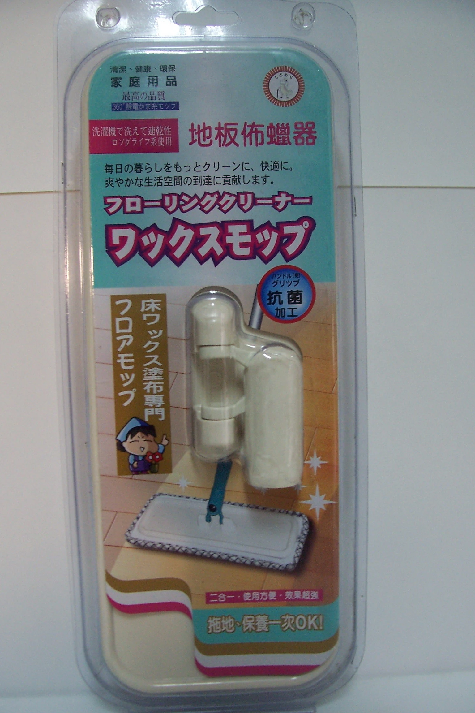 其拖把頭材質輕,可360°自由旋轉,使用時好佈蠟,蠟層瞬間光亮,輕鬆維護地板的乾淨。